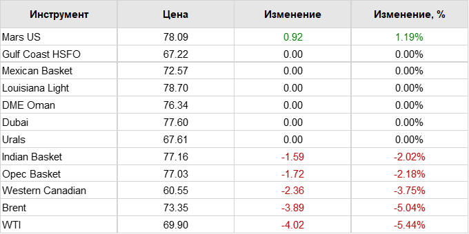 Нефть. Цены по сортам на 4 сентября 2024