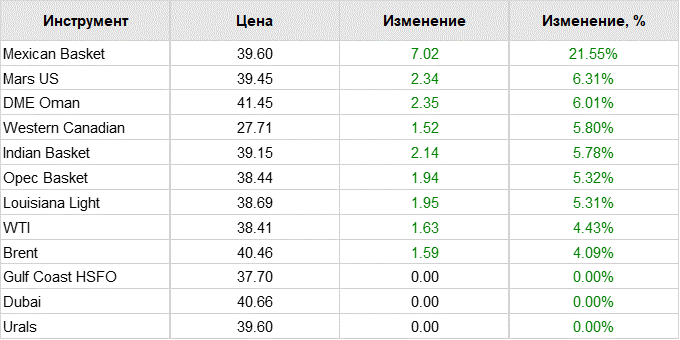 Декабрьские фьючерсы на WTI к этому времени дешевели на Нью-йоркской товарной бирже NYMEX на $0,74 (1,89%), до $38,41 за баррель. За предыдущую сессию контракт подорожал на $1,49 (4%) — до $39,15 за баррель.