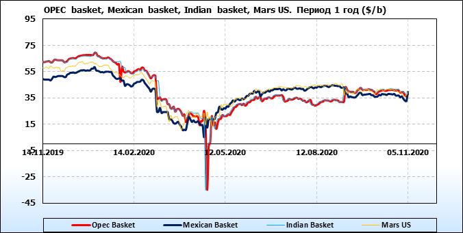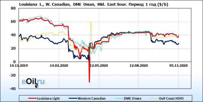 Нефть. Цены по сортам на 5 ноября 2020