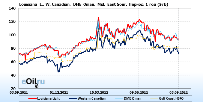 Нефть. Цены по сортам на 5 сентября 2022
