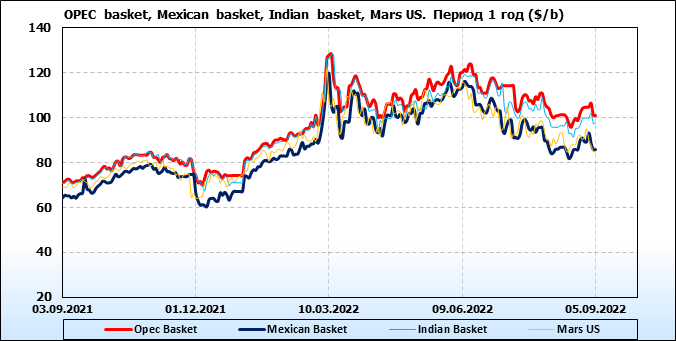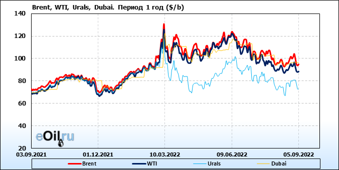 Нефть. Цены по сортам на 5 сентября 2022