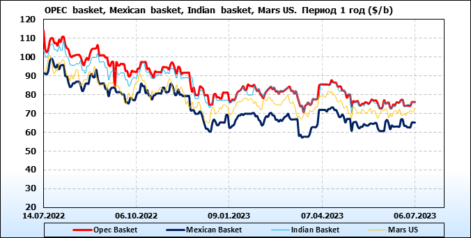 Нефть. Цены по сортам на 6 июля 2023