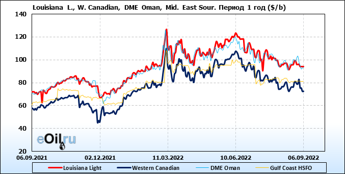 Нефть. Цены по сортам на 6 сентября 2022