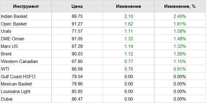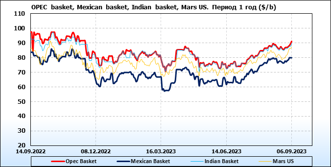 Нефть. Цены по сортам на 6 сентября 2023