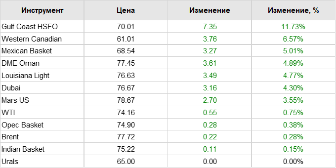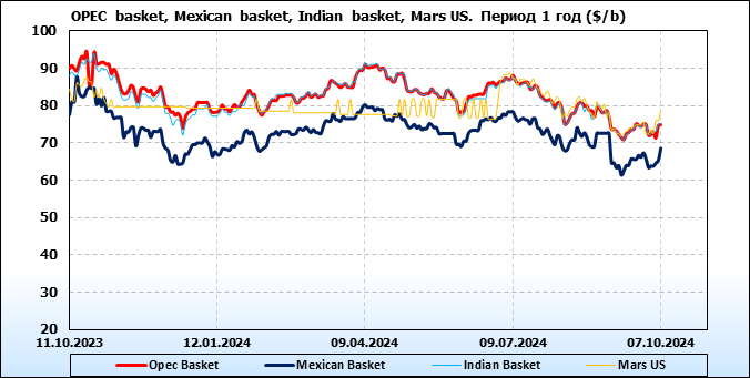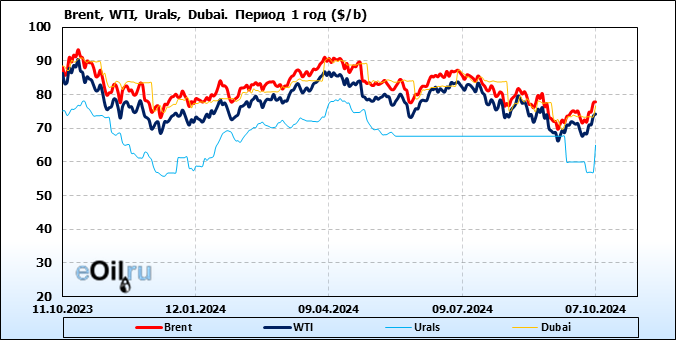 Нефть. Цены по сортам на 7 октября 2024