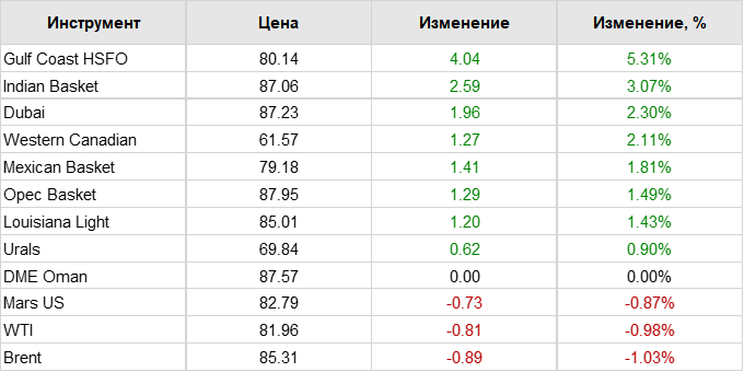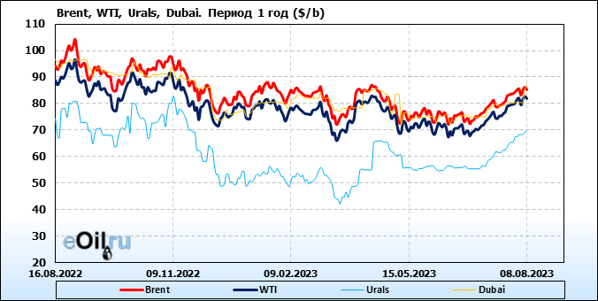 Нефть. Цены по сортам на 8 августа 2023