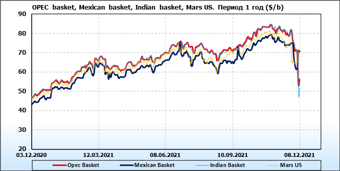 Цена на нефть в 2022 году будет держаться в пределах 70-80 долларов за баррель, если худшие ожидания от нового штамма коронавируса «омикрон» не оправдаются, заявил РИА Новости директор по исследованиям и разработкам крупнейшей нефтегазовой компании Индии Indian Oil С. Рамакумар. «Как представители индустрии мы считаем, что цены на сырую нефть будут колебаться на уровне 70-80 долларов за баррель, если не случится чего-то необычного и непредвиденного», — сказал Рамакумар на полях проходящего в Хьюстоне 23-го Мирового нефтяного конгресса.