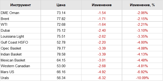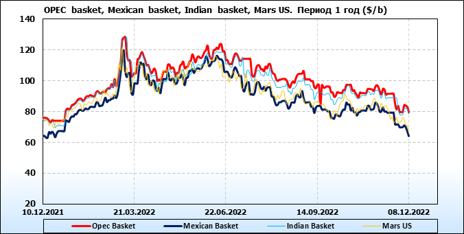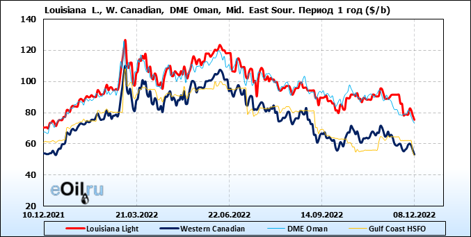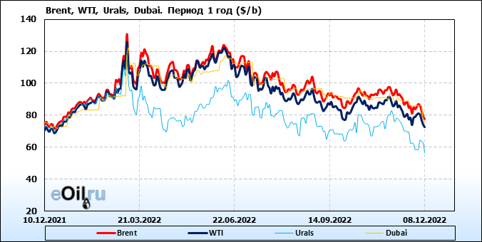 Нефть. Цены по сортам на 8 декабря 2022