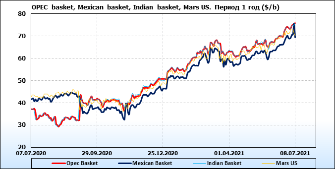 Нефть. Цены по сортам на 8 июля 2021