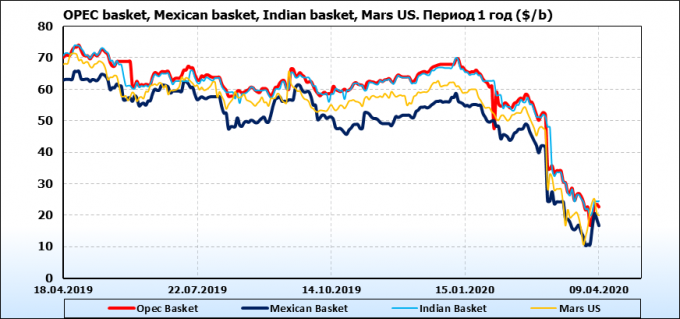 Нефть. Цены по сортам на 9 апреля 2020