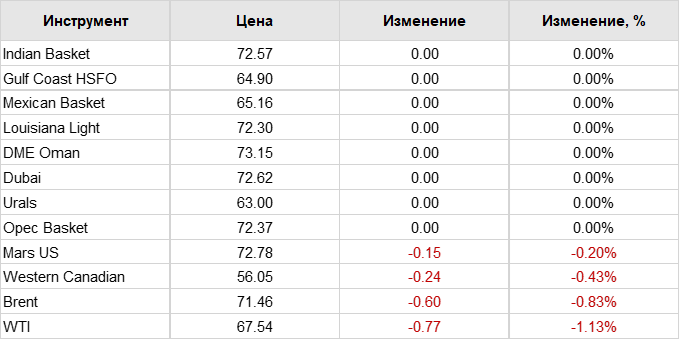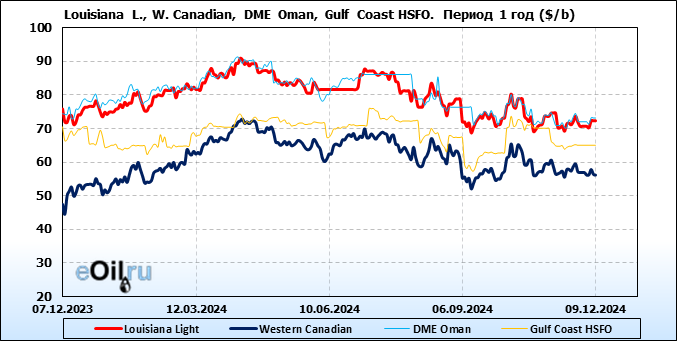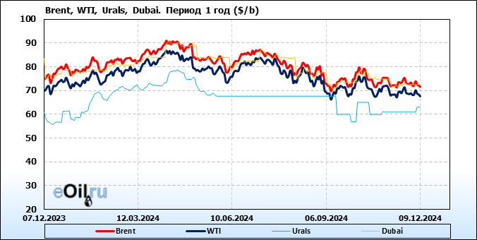 Нефть. Цены по сортам на 9 декабря 2024