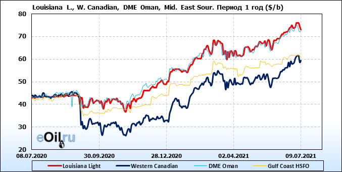 Нефть. Цены по сортам на 9 июля 2021