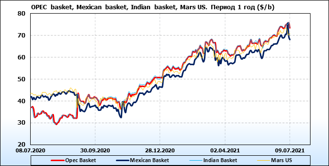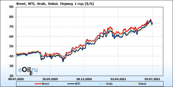 Нефть. Цены по сортам на 9 июля 2021