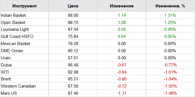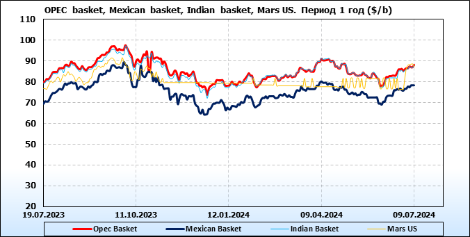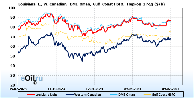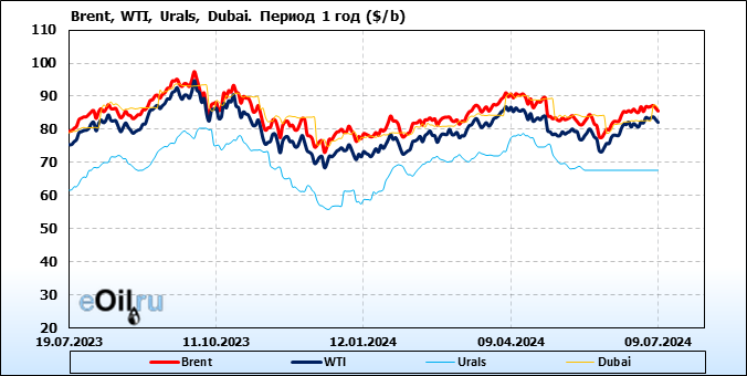 Нефть. Цены по сортам на 9 июля 2024