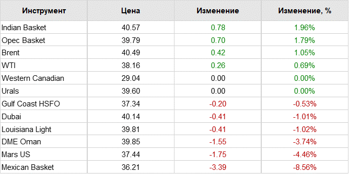 По состоянию на 7.56 мск цена январских фьючерсов на североморскую нефтяную смесь марки Brent росла на 2,64% — до 40,49 доллара. Декабрьские фьючерсы на нефть марки WTI дорожи на 2,85% — до 38,2 доллара за баррель.