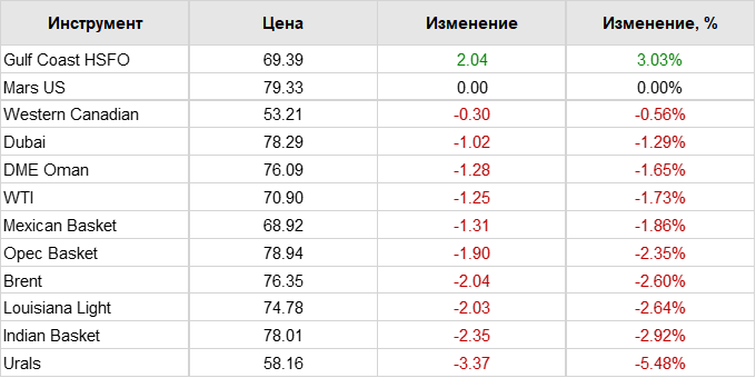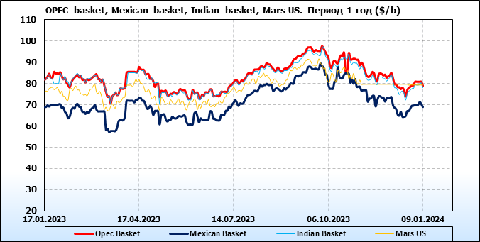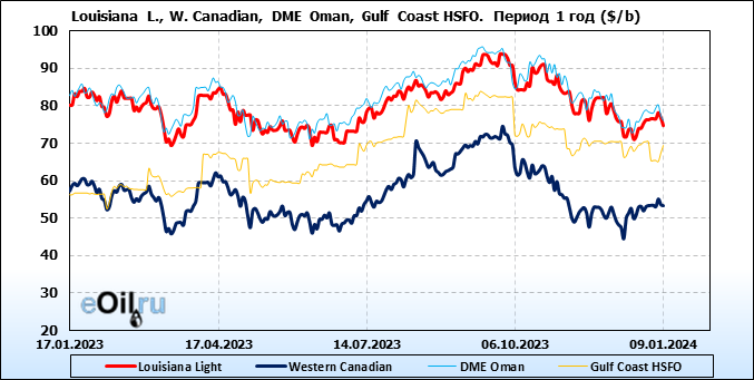 Нефть. Цены по сортам на 9 января 2024