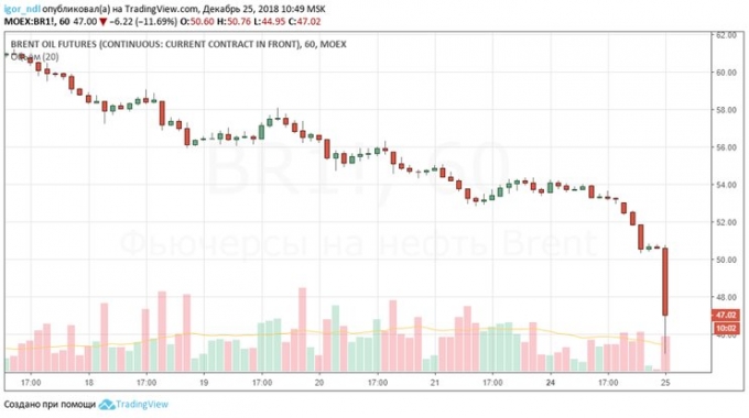 Фьючерсы на нефть торгуются на Московской бирже, и они, по сути, связаны с торгами на бирже ICE. Сегодня в ходе торгов на Мосбирже фьючерсы на Brent рухнули практически с самого открытия, пробив сначала отметку $50, а затем и все остальные.