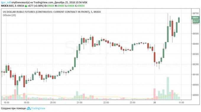 Лучше всего это видно на графике фьючерсов на пару доллар/рубль.
