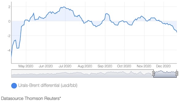 Летом на фоне беспрецедентного сокращение добычи в рамках ОПЕК+ российская нефть торговалась с рекордной в истории премией, достигавшей 2 доллара за баррель.