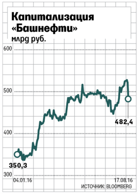 В среду к 12.00 мск котировки обыкновенных акций «Башнефти» на Московской бирже снизились на 9,5%, привилегированных – на 6%. К концу торгов обыкновенные акции подешевели на 8,17%, привилегированные – на 2,29%. Индекс ММВБ упал на 0,33%. За день капитализация «Башнефти» снизилась на 7,5% до 482,4 млрд руб. – с начала года, когда было объявлено о приватизации госпакета «Башнефти», компания сильно подорожала (см. график).