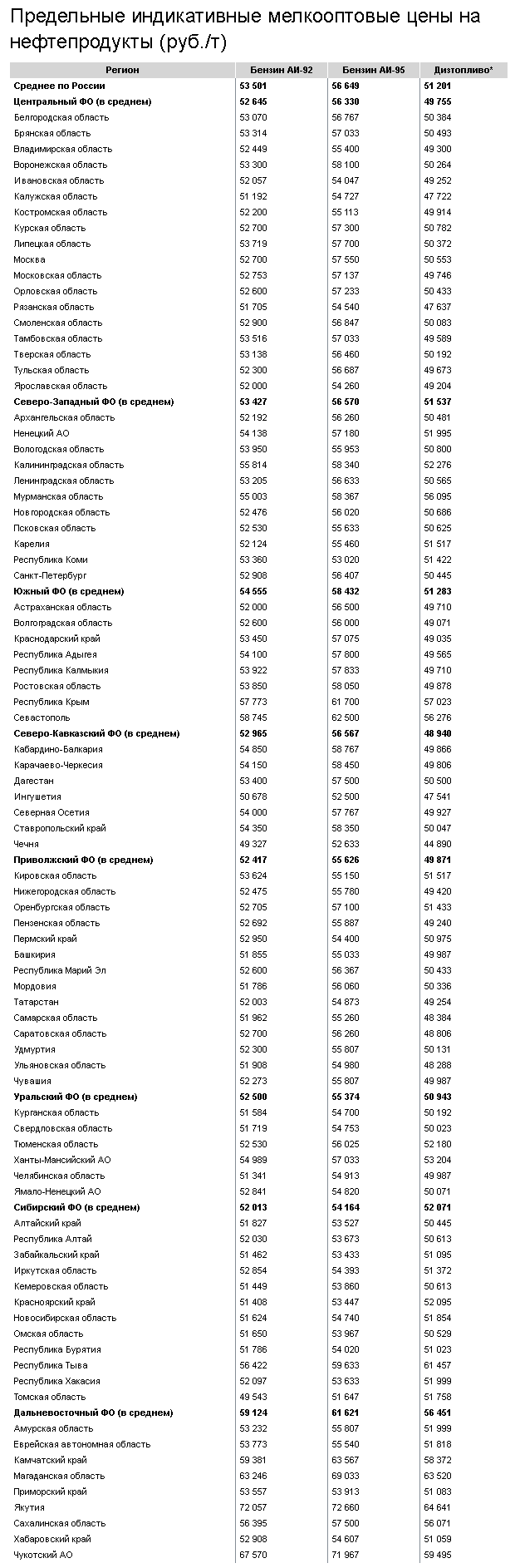 Как следует из приложения к протоколу, средний ИУЦ по РФ для АИ-92 — 53,5 тыс. руб. за тонну, АИ-95 — 56,6 тыс. руб., летнего дизтоплива — 51,2 тыс. руб. (для зимнего дизеля — плюс 2,4 тыс. руб. к ИУЦ летнего). По словам Дмитрия Козака, цены устанавливались так, чтобы маржа АЗС составляла 2,7 тыс. руб. за тонну (2 руб. на литр) горючего.
