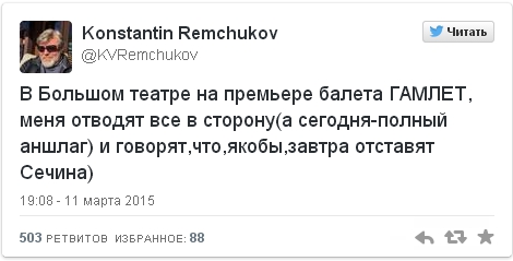 Позже сообщение Ремчукова было опровергнуто в «Роснефти». Представитель компании назвал эту информацию «театральными фантазиями». Сообщение журналиста прокомментировал и Песков: «Как только весной появляется солнце, как только начинает пахнуть весной, начинаются обострения — кому-то грезится отставка Сечина, кому-то — отставка правительства, а кто-то несколько дней не видит по телевизору президента Путина».