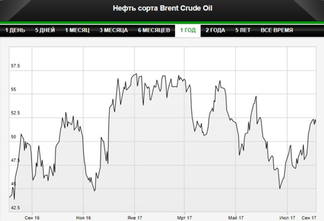 Цены на нефть марки Brent упала на 22%, достигнув минимума в июне. И хотя с тех пор нефть подорожала, она по-прежнему торгуется лишь в районе $52.