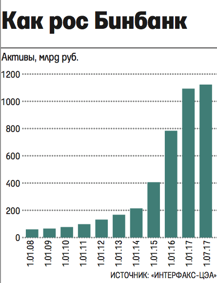 В 2015 г. Гуцериев говорил в интервью РБК, что хочет сделать банк, который войдет в первую десятку. С 2014 г. группа стала приобретать один банк за другим. Весной 2014 г. начался отток средств из «дочки» украинского Приватбанка, Москомприватбанка, и ЦБ ввел в него временную администрацию. Вскоре его за 6 млрд руб. купил Бинбанк, получив на санацию Москомприватбанка льготный кредит ЦБ в 12 млрд руб. Теперь это «Бинбанк диджитал».