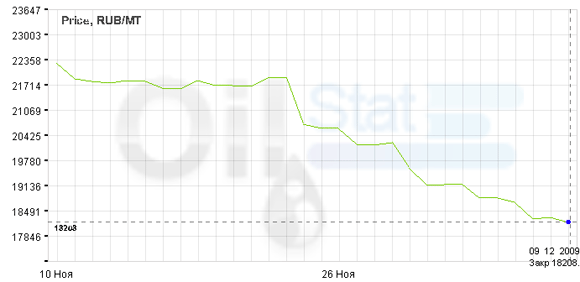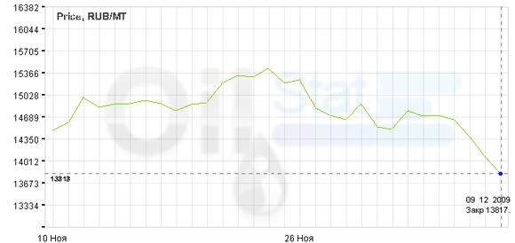 Цены в регионах продолжили демонстрировать заметное снижение. Так, первая декада декабря в Санкт-Петербурге и Ленобласти охарактеризовалась существенным понижением стоимости моторного топлива. На сегодняшний день цены на нефтепродукты более чем на 3% снизились по сравнению с началом месяца. Столь существенное уменьшение цен на данном региональном рынке наблюдалось примерно год назад, в ноябре и декабре 2008 года. Несмотря на то, что тенденция к снижению цен на топливо пока сохраняется, игроки настроены довольно оптимистично. Спрос на зимние сорта дизельного топлива потихоньку идет вверх, что может оказать поддержку ценам. В сегменте бензинов ситуация более сложная. Вероятность еще некоторого понижения цен остается высокой. Многие региональные операторы предпочитают большую часть объемов реализовать через собственные розничные сети АЗС, где темпы падения цен ниже, чем в оптовом секторе.