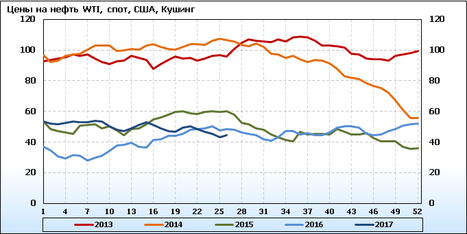 Цена на сорт MARS упала на -1,03 до 43,54 долларов за баррель.