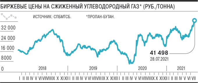 В «Газпром ГНП холдинге» (отвечает в «Газпроме» за реализацию СУГ) сообщили “Ъ”, что цены подогреваются ожиданиями дефицита поставок СУГ и растущей ценой экспортной альтернативы. В компании при этом отметили, что не видят дефицита предложения на внутреннем рынке, добавив, что за январь—июль «Газпром ГНП холдинг» увеличил поставки СУГ на рынок РФ на 15% к уровню 2020 года и на 6% к уровню 2019 года.
