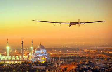 Летательный аппарат Solar Impulse 2, работающий только на солнечной энергии, совершит первый в мире кругосветный перелет, не потратив ни одной капли топлива любого вида. Он поднимется в воздух в столице Объединенных Арабских Эмиратов Абу-Даби, куда должен вернуться через пять месяцев.