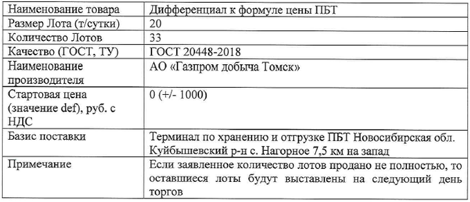 «Газпром ГНП Продажи» извещает о начале торгов дифференциалом к формуле цены ПБТ