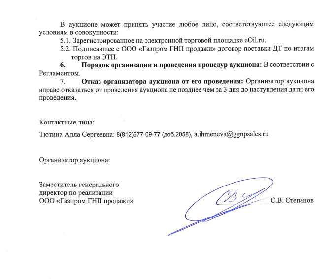 Подписавшее с ООО «Газпром ГНП продажи» договор поставки ДТ по итогам торгов на ЭТП.