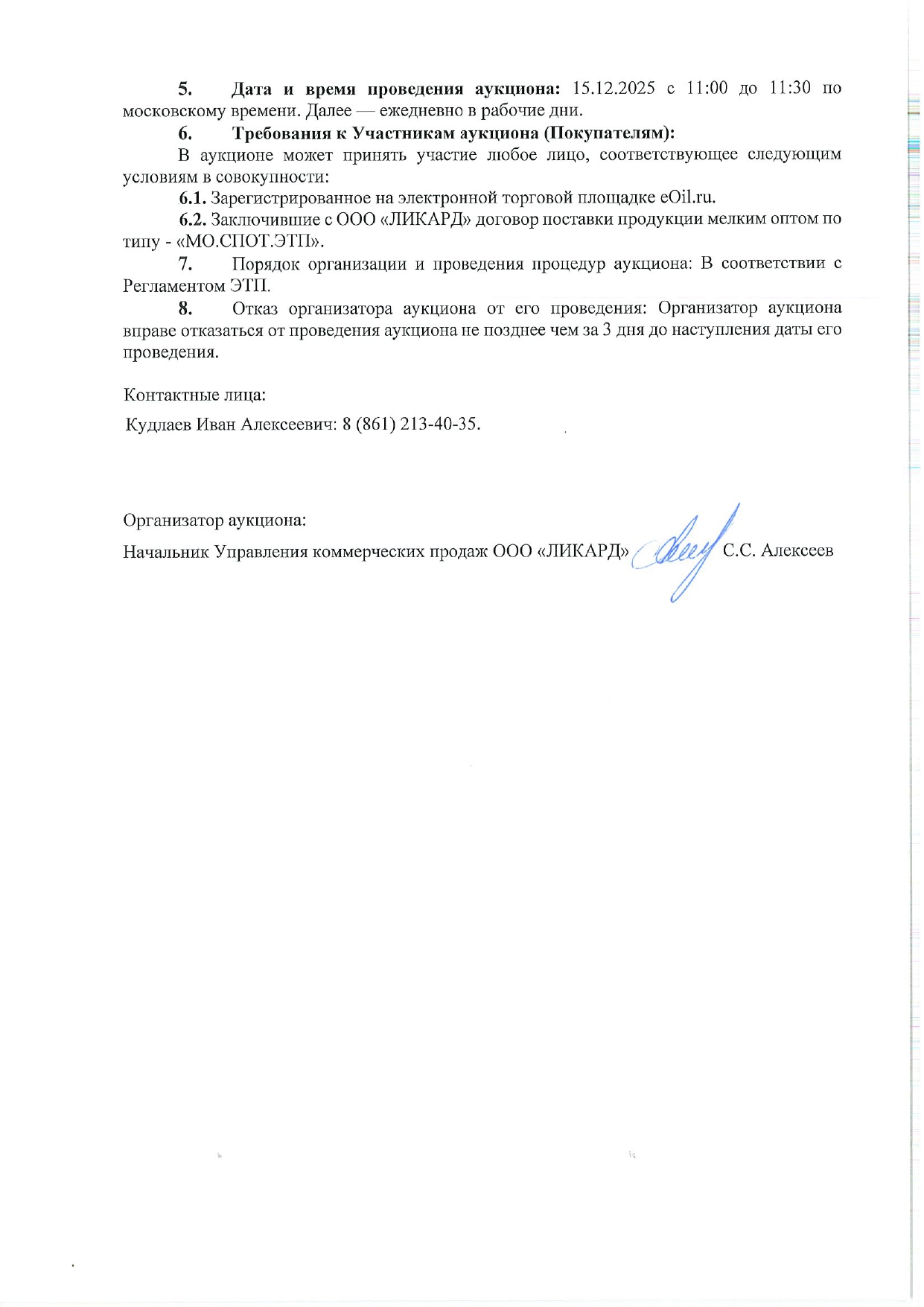 5. Дата и время проведения аукциона: 15.12.2025 с 11:00 до 11:30 по московскому времени. Далее — ежедневно в рабочие дни.