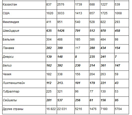 * Курсивом выделены оффшорные и спарринг-оффшорные юрисдикции.