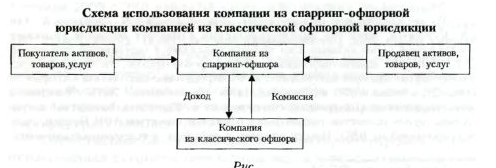 Кроме Нидерландов и Великобритании к спарринг-оффшорным юрисдикциям могут быть отнесены Канада, Дания, Франция, Исландия, Испания, Италия, Австрия, Греция, Новая Зеландия, США, Люксембург, Ирландия, Португалия и многие другие государства. В этих государствах (или их отдельных территориально-административных единицах) корпоративное законодательство при определенных условиях (например, при получении доходов из-за рубежа) предоставляет льготы по налогообложению. При этом фактор льгот, играющий важнейшую роль в формировании оффшорных финансовых сетей, в некоторых ситуациях может не приниматься во внимание, так как практически в любой стране можно зарегистрировать компанию, работающую в связке с оффшорной, например, в качестве агента на комиссии. И эта компания будет платить налоги только с комиссионных, которые можно целенаправленно занизить (см. рис.).