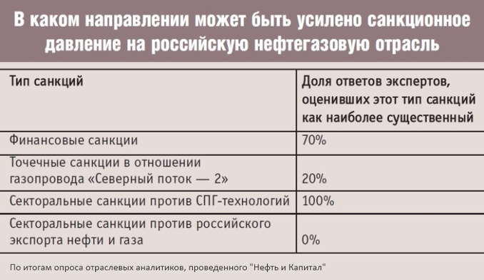 Немаловажным представляется и вопрос о том, в каком направлении стоит ждать усиления антироссийских санкций, учитывая весьма резкую риторику, которую себе позволяют США, а также политику Евросоюза в отношении российского проекта «Северный поток-2». По этому вопросу большинство опрошенных «НиК» экспертов дали однозначную оценку: будущие санкции могут касаться именно «Северного потока-2» и усиления финансового давления на Россию. При этом никто из них не верит в принятие серьезных секторальных ограничений против российского экспорта углеводородов.