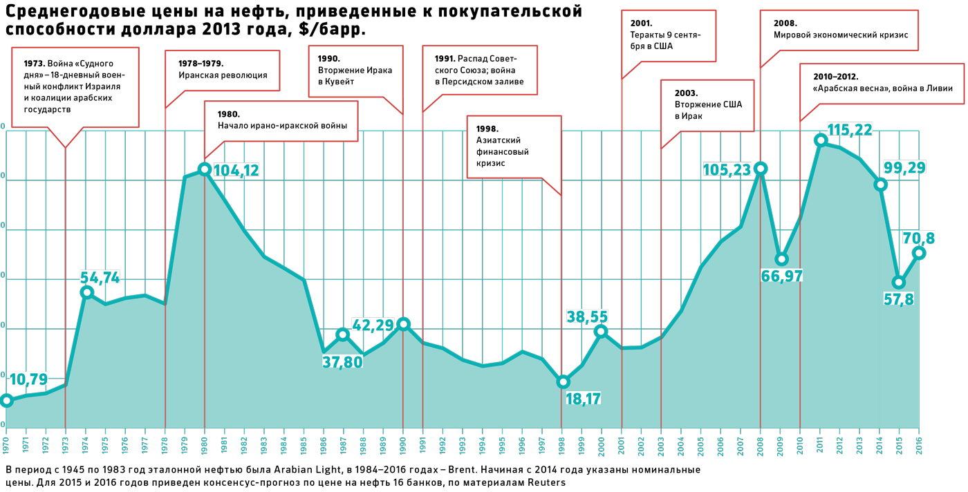 В последние три года нефть продавалась по высочайшим в истории ценам. Столь высокий уровень оказал сильнейшее влияние на многие сферы экономики и «привел к изменениям моделей поведения многих субъектов, предопределил эволюцию политических систем и даже повлиял на образ жизни большого количества людей на всей планете».