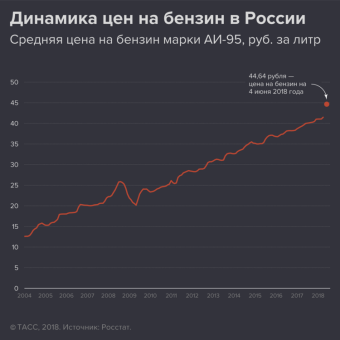 Согласно последним данным Росстата, с начала июня бензин в России подорожал на 0,8%, а с начала года — на 8%. Дизтопливо с начала года поднялось в цене на 8,5%.