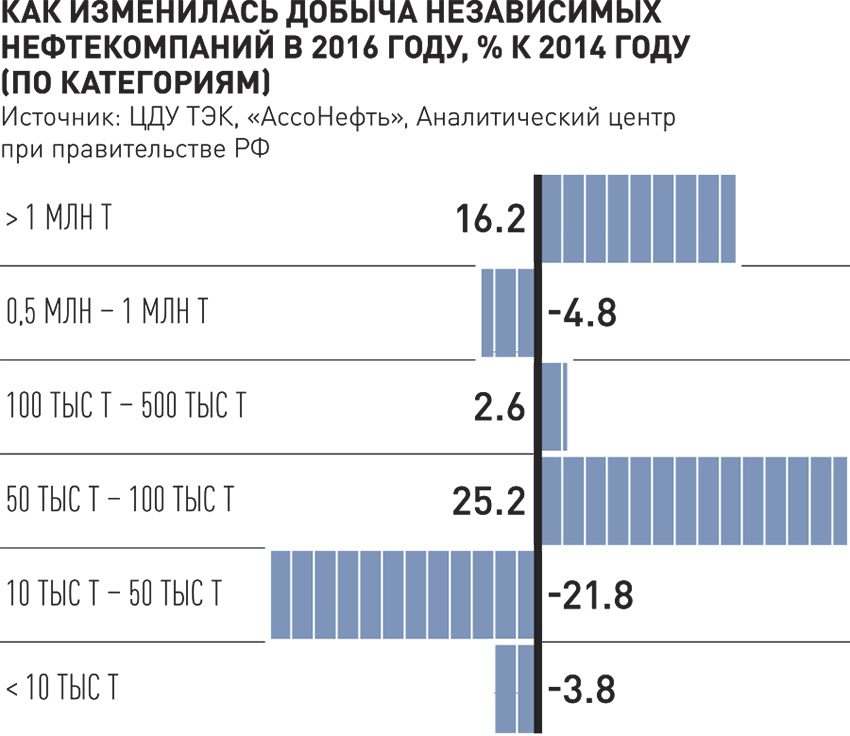 К таким выводам пришли в Аналитическом центре при правительстве РФ в ежемесячном энергобюллетене (есть у «РГ»). В Ассоциации независимых нефтегазодобывающих организаций («АссоНефть») выводы экспертов частично подтвердили: в 2016 году из их сегмента ушли около 13 компаний, однако на их место пришли несколько новых игроков, готовых рисковать.