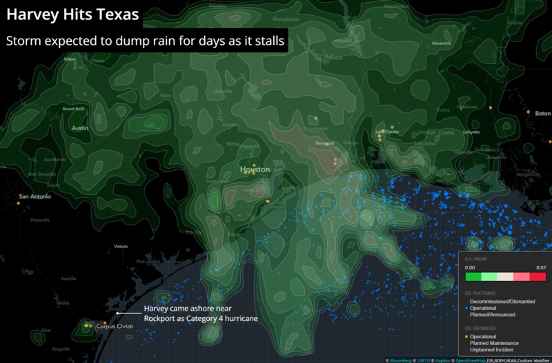 Тропический шторм Харви обрушил на Хьюстон, четвертый по величине город США, беспрецедентный уровень осадков.