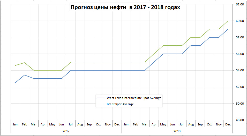 Рис.2: Прогноз цены нефти до конца 2018 года. Источник US EIA