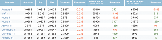 Результаты по контракту WTI (Light sweet) за11 марта: