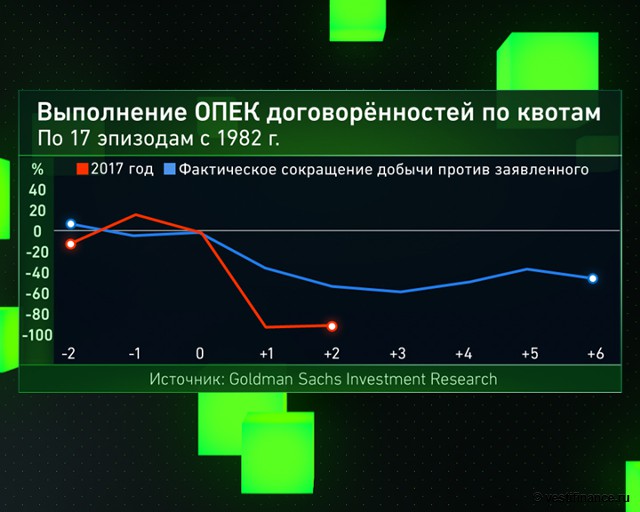 Напомним, 30 ноября 2016 г. в Вене страны ОПЕК договорилась о сокращении своей добычи на 1,2 млн баррелей в день с октябрьского уровня в 32,5 млн баррелей. После чего 10 декабря 11 государств, не входящие в ОПЕК, согласовали сокращение своей добычи суммарно на 558 тыс. баррелей в сутки, в том числе Россия — на 300 тыс. баррелей. Как рассказал министр энергетики РФ Александр Новак, российская сторона на текущий момент сократила добычу нефти на 185 тыс. баррелей в сутки. По графику до конца марта она должна увеличить этот показатель до 200 тыс.