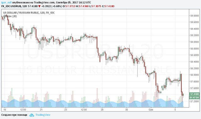 Курс пары доллар/рубль опустился в район 57,40 руб., а евро — 68,35 руб.