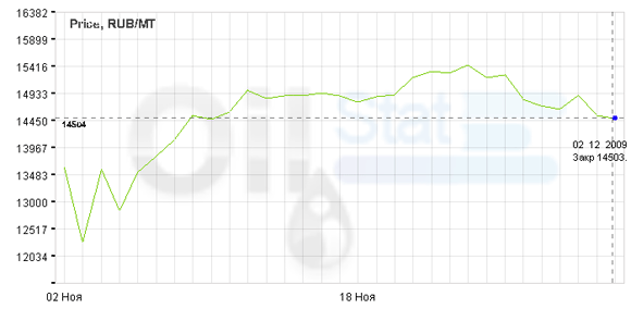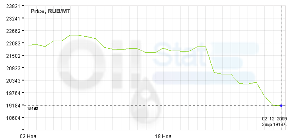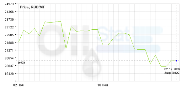 Оптовые цены на основные виды нефтепродуктов на российском рынке показывают существенное понижение. Отрицательное влияние на цены оказывают преимущественно низкий спрос при достаточном количестве предложения и низкая привлекательность экспорта. Также не слишком оптимистичные прогнозы на следующий месяц продолжают оказывать давление на рынок. За период с 26 по 30 ноября общее снижение цен по рынку составило 2,26%. Веским аргументом в пользу сокращения стоимости готовой продукции для большинства компаний-производителей стало поведение уфимского рынка, который на протяжении практически всего ноября демонстрировал отрицательную динамику цен.