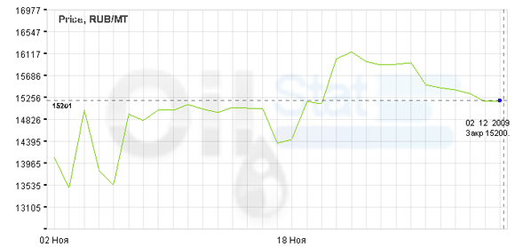 1 декабря индекс цен на дизельное топливо летнее с базисом Москва составил 15 200 руб. за тонну.