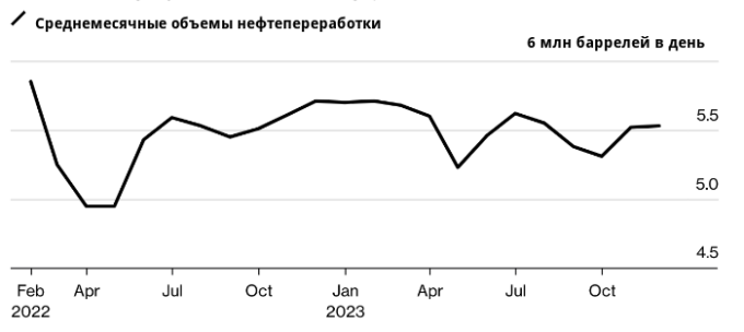 Россия совместно с союзниками по ОПЕК+ пообещала сократить экспорт нефти и нефтепродуктов на 500 000 баррелей в день в первом квартале следующего года. Сейчас страна сокращает экспорт на 300 000 баррелей в день. По словам Александра Новака, сокращения начнутся уже в декабре и достигнут заявленного уровня в январе 2024 года.