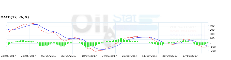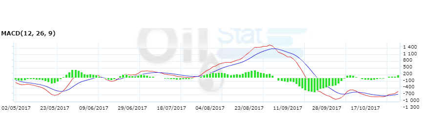 Рынок находится в падающем тренде на протяжении 9 дней. Индикатор MACD  поддерживает тренд.